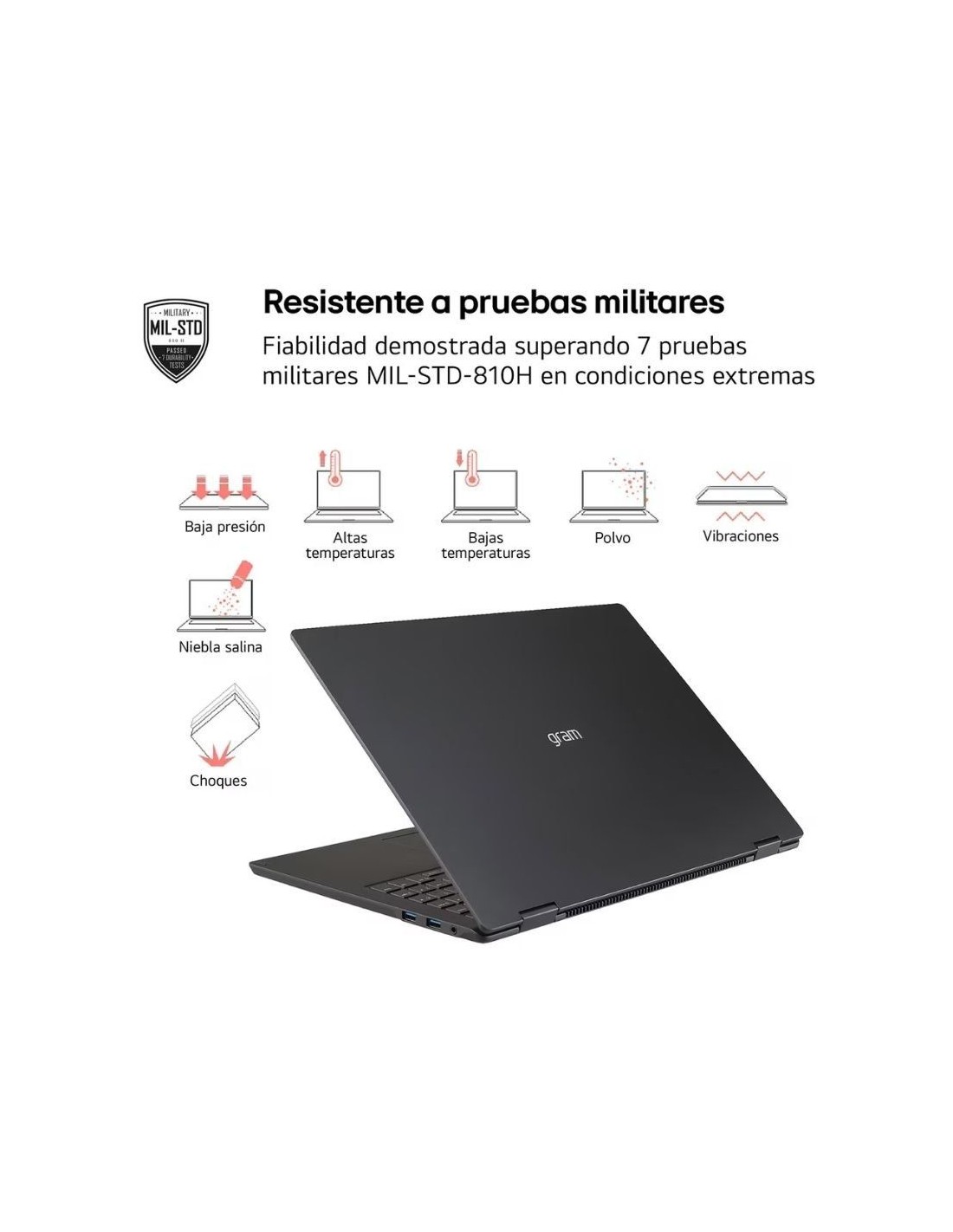 Certificación: STD-MIL 810H (7 pruebas de resistencia)
