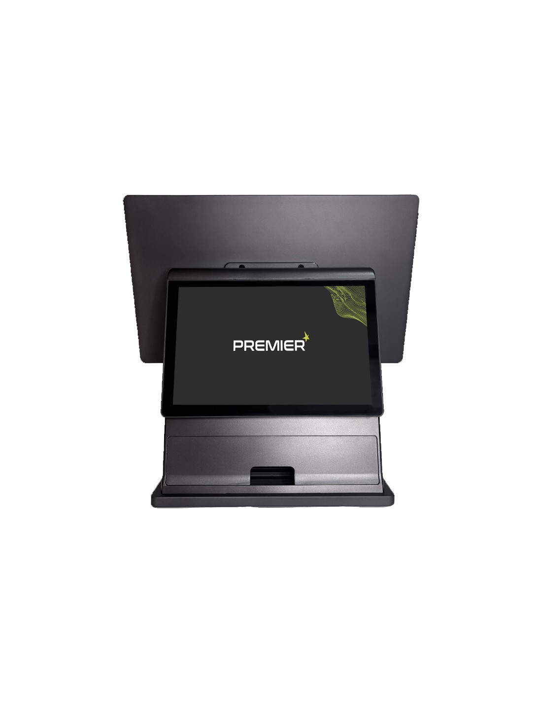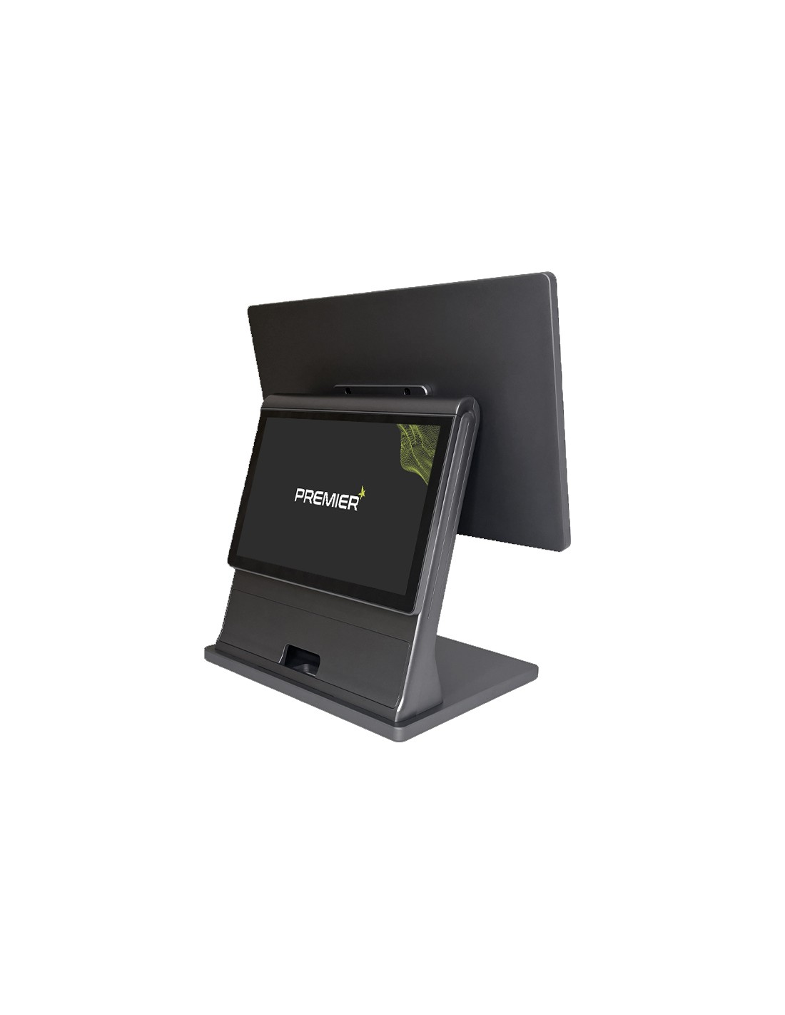 Nuevo modelo de TPV con pantalla 15'6 pulgadas capacitivo flat true, N97 1.99GHz, con segunda pantalla de 10'1 pulgadas en gris antracita.
